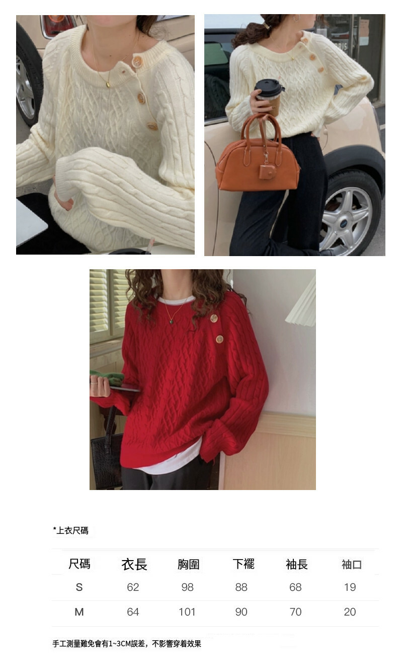 熱推毛衣服飾 圓領麻花套頭毛衣 百搭款 【白色】下單後請聯絡客服確認呎碼