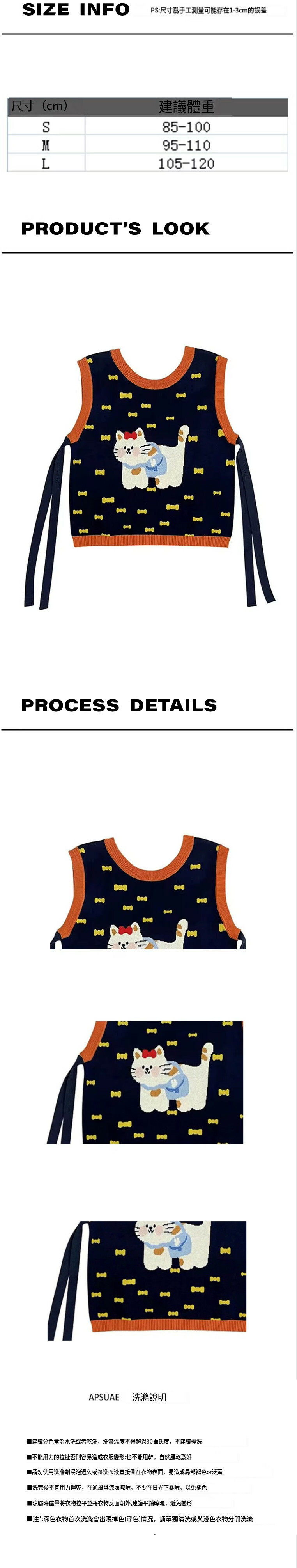熱推甜美貓咪針織馬甲(深藍色)(S/M/L碼,下單後請與客服聯繫發貨尺碼)