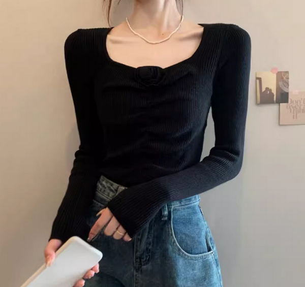 熱推立體花朵針織衫上衣(黑色均碼)