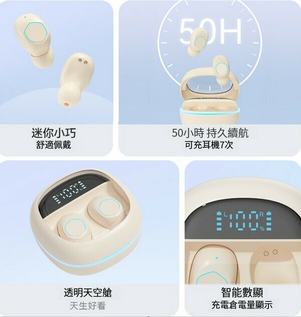 熱推透明智能數顯藍牙耳機-M41紫色