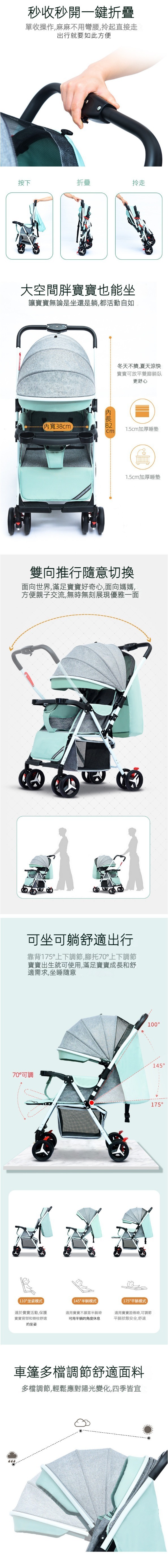 熱推可坐可躺超輕便攜嬰兒推車【803-4(旗艦版)純色薄荷綠】