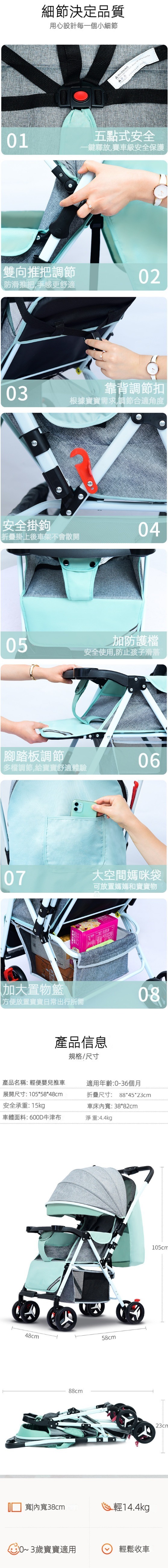 熱推可坐可躺超輕便攜嬰兒推車【803(尊享版)一鍵收車亞麻灰】