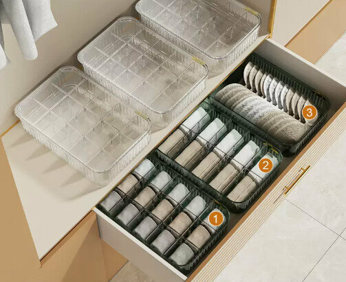 熱推內衣內褲收納盒【(無蓋15格-墨綠金)疊加收納帶蓋防塵】
