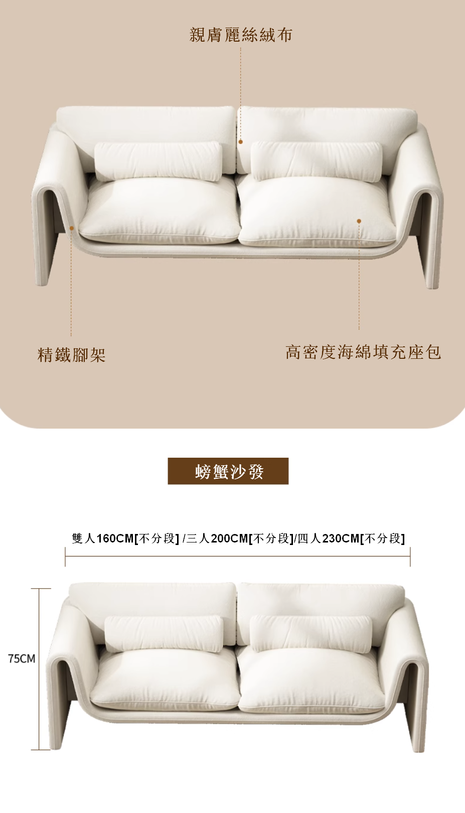 熱推麗絲絨布沙發(四人位 2.3米)