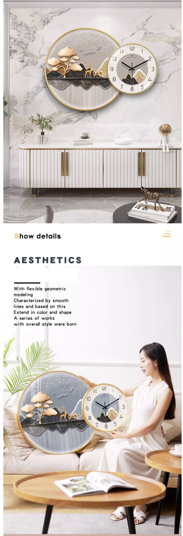 熱推掛鐘(金框YH257+G157+鋼化面鐘錶)小號/65X50CM
