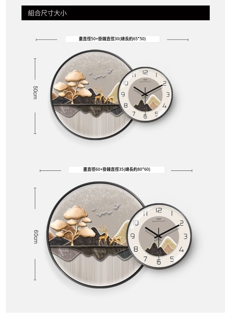 熱推掛鐘(金框YH258+G158+鋼化面鐘錶)小號/65X50CM