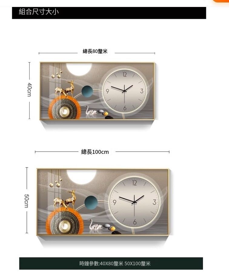 熱推掛鐘(JC_ 186高貴金框) 大號/100X50CM