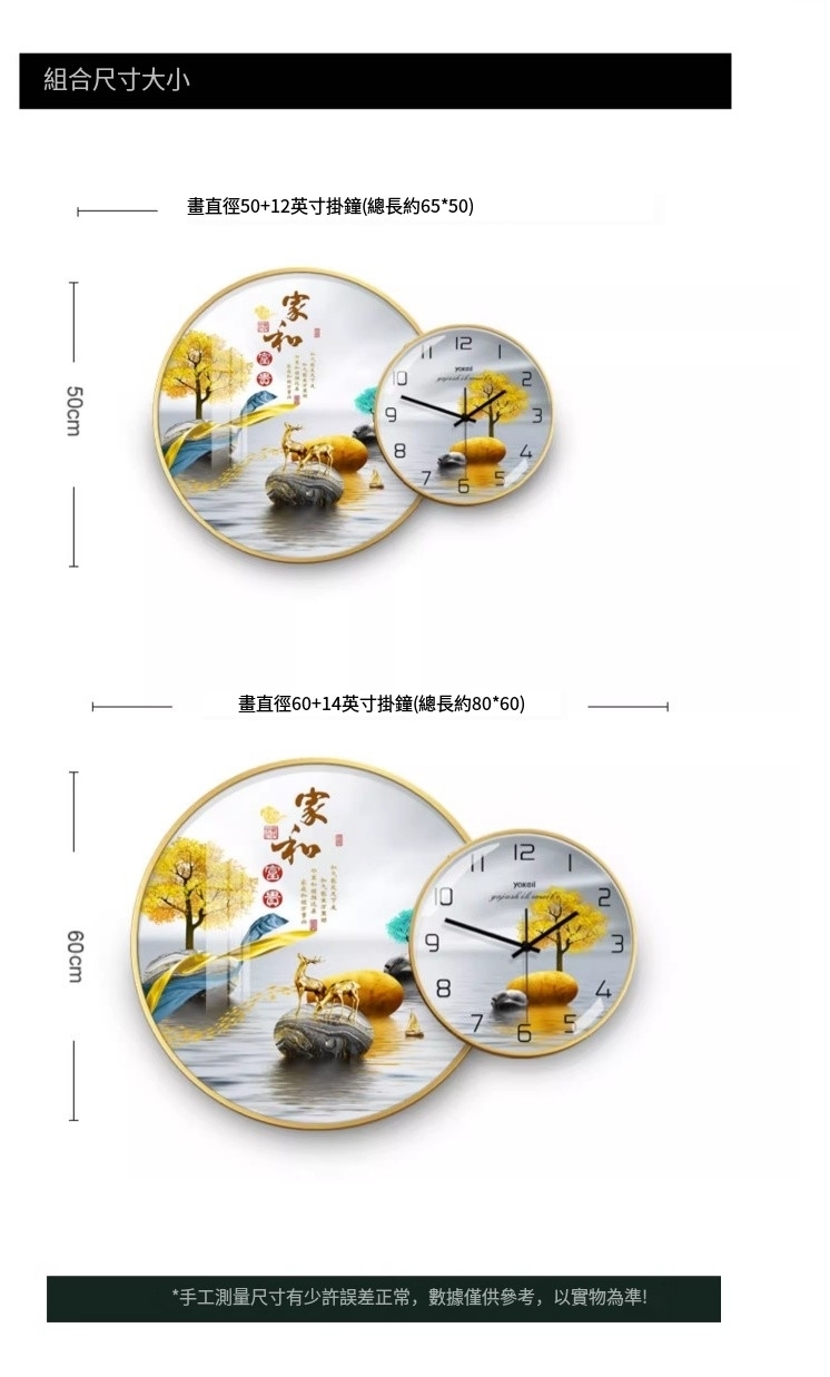 熱推掛鐘(高貴金框YH180+G30+鋼化水晶面鐘錶)/小號/65X50CM