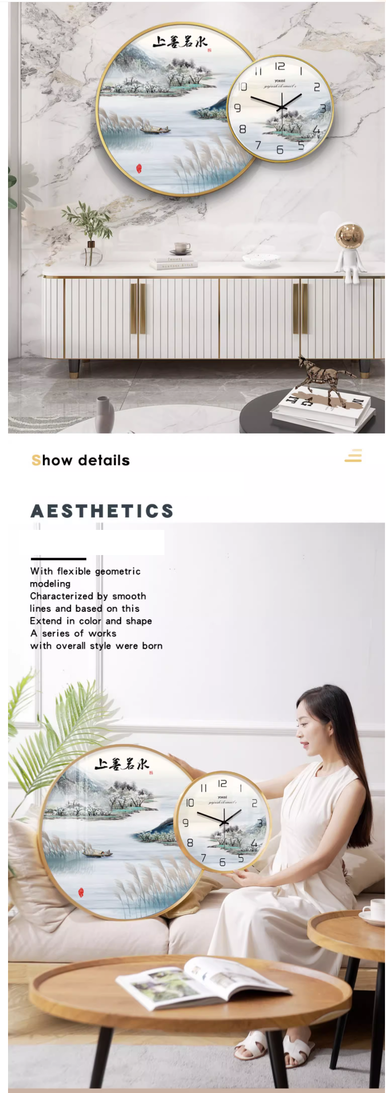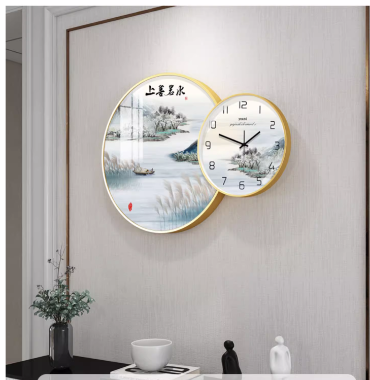 熱推掛鐘(高貴金框YH207+G107鋼化水晶面鐘錶)小號/65X50CM
