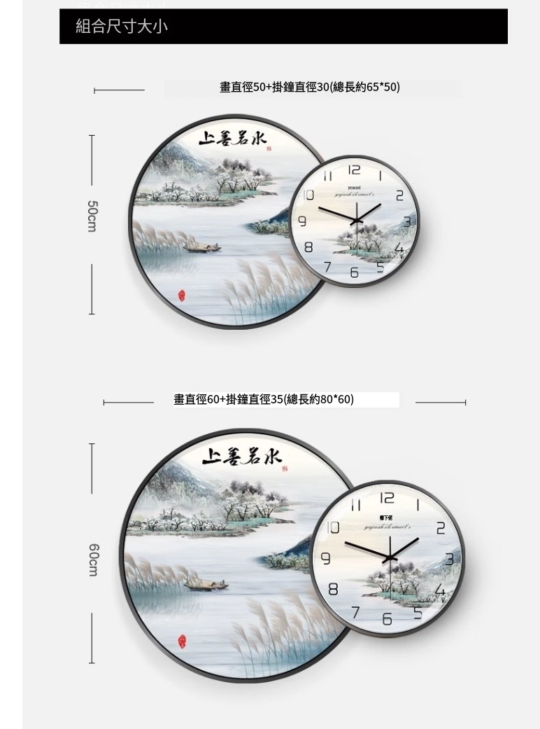 熱推掛鐘(高貴金框YH208+G108鋼化水晶面鐘錶)大號/80X60CM