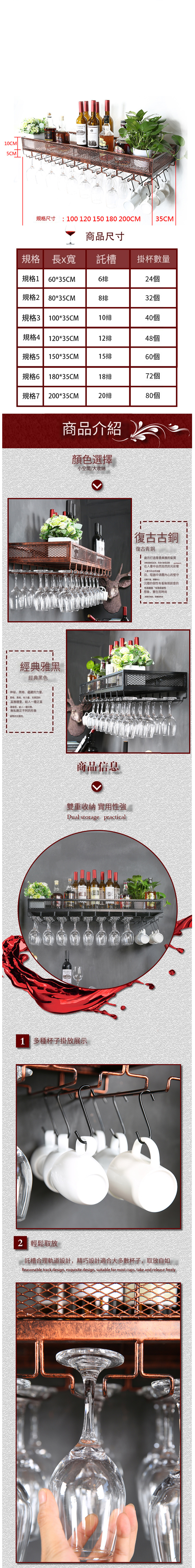 熱推壁掛置物架紅酒架懸掛酒杯架(雅黑色,120*35cm)