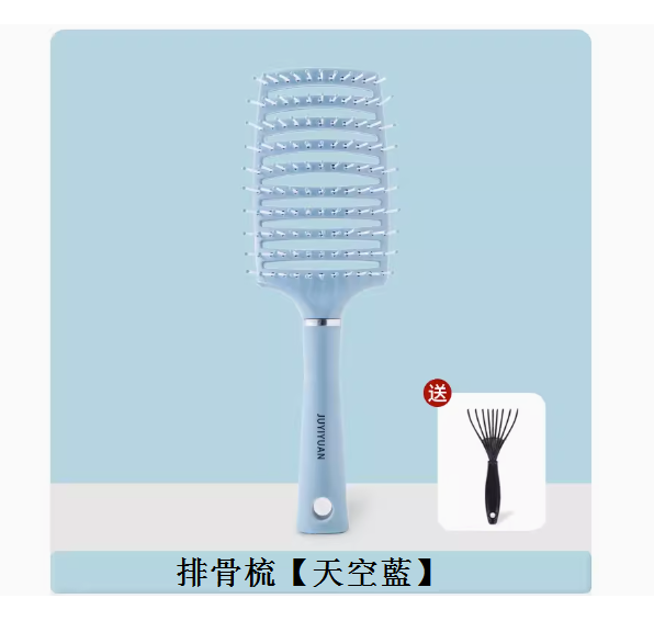 熱推女士卷發按摩梳子(天空藍【送清潔爪】排骨梳)