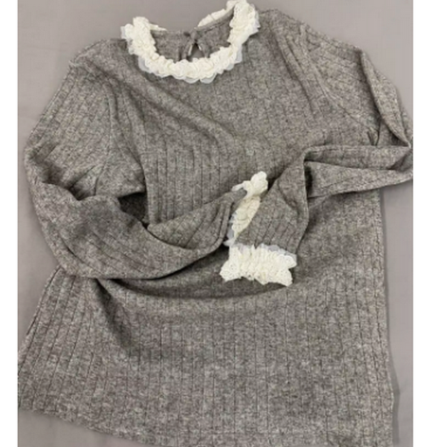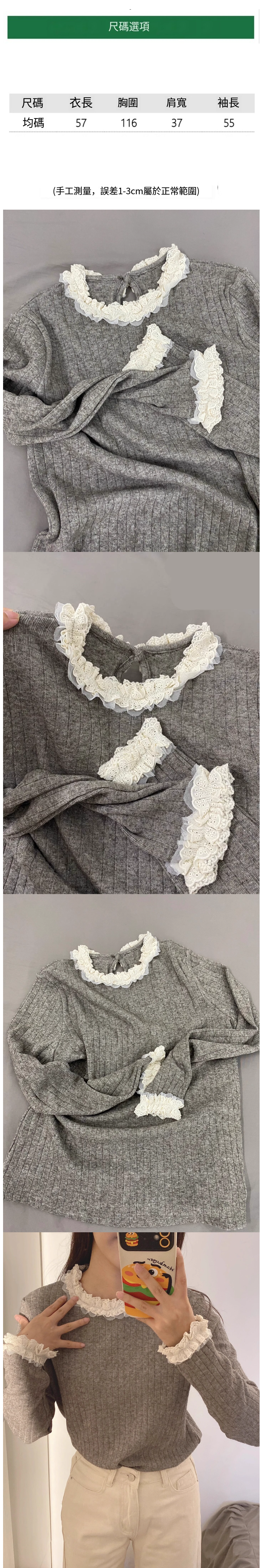 熱推女士木耳花邊長袖針織衫(花灰色均碼)