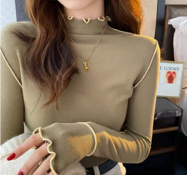 熱推女士半高領木耳邊長袖T恤上衣(綠色均碼)