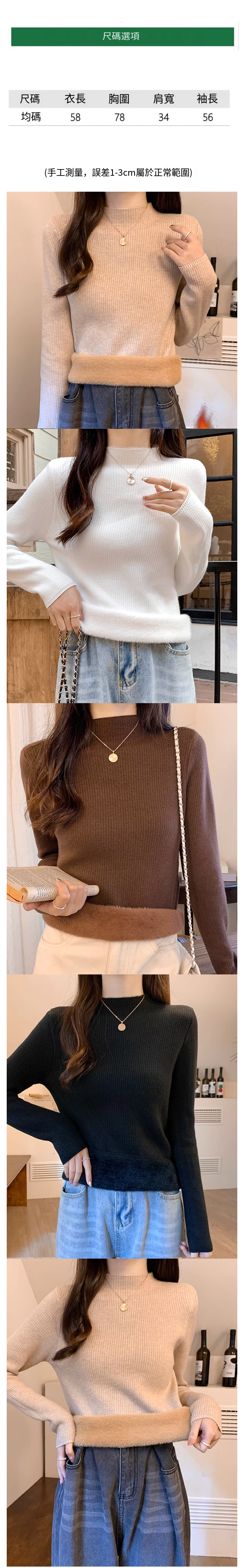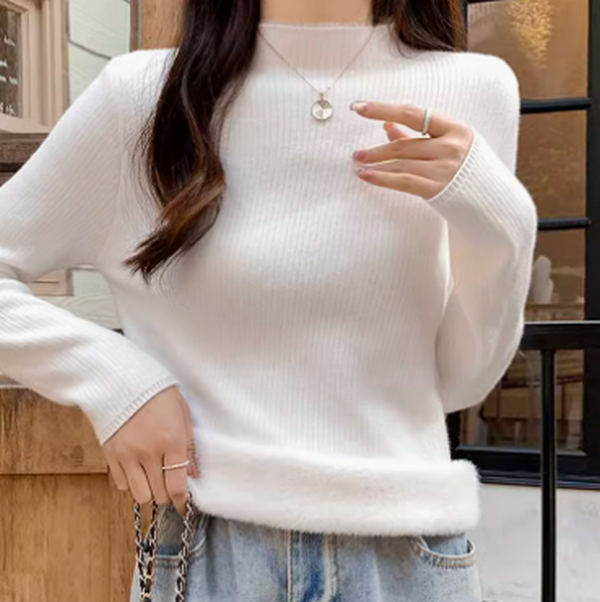 熱推女士半高領加絨針織打底衫(白色均碼)