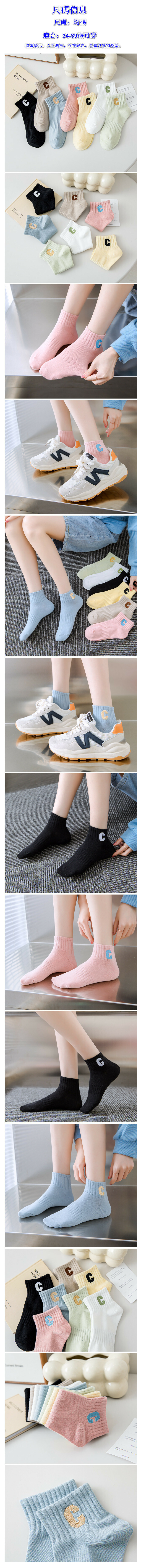 熱推女春秋款刺繡棉襪 運動中短筒襪【豆綠】【均碼】