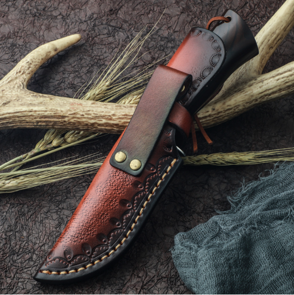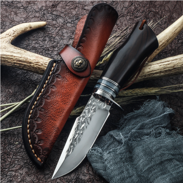 熱賣大馬士革非折疊刀(黑檀木手柄)(規格:全長22*刃長9.8*刃寬3.2*刃厚0.38CM)