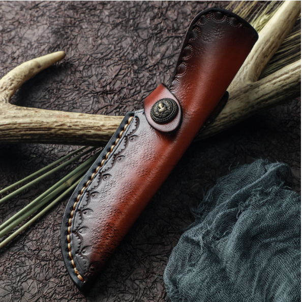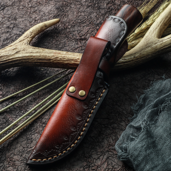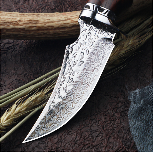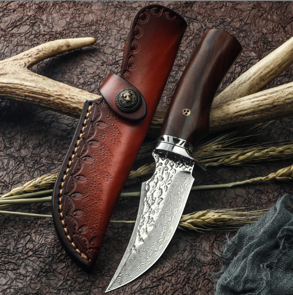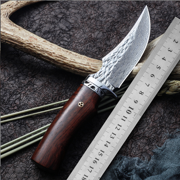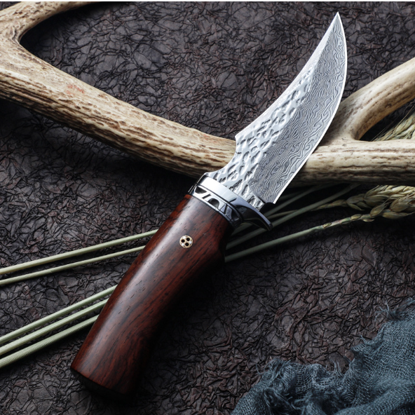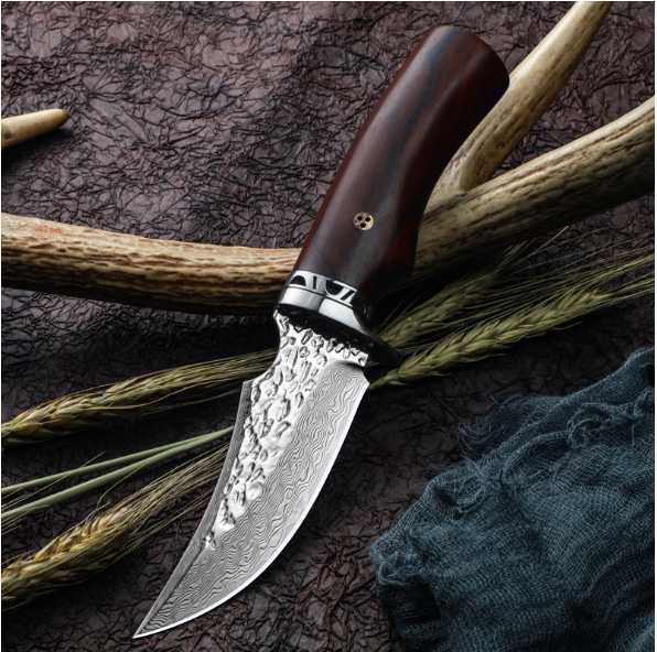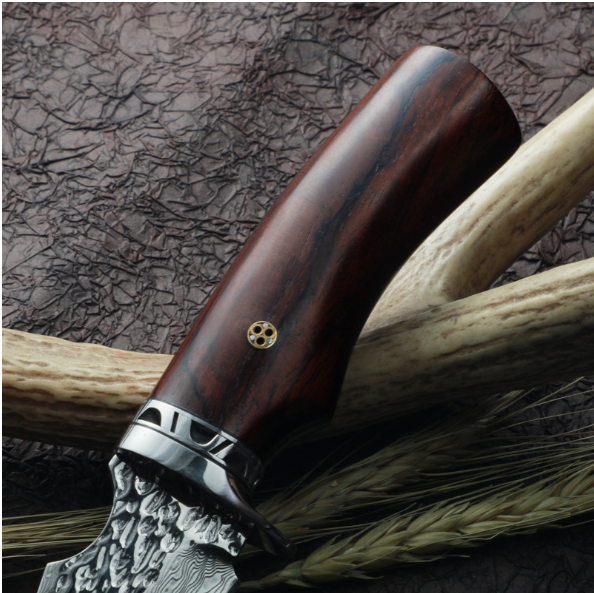 熱賣大馬士革鋼刀(紅檀木手柄)(規格:全長22.5*刃長9.8*刃寬3.5*刃厚0.38CM)