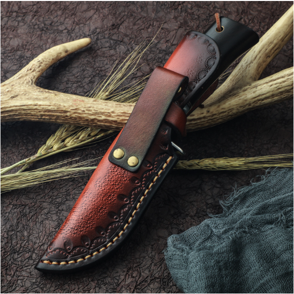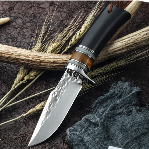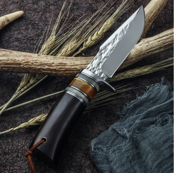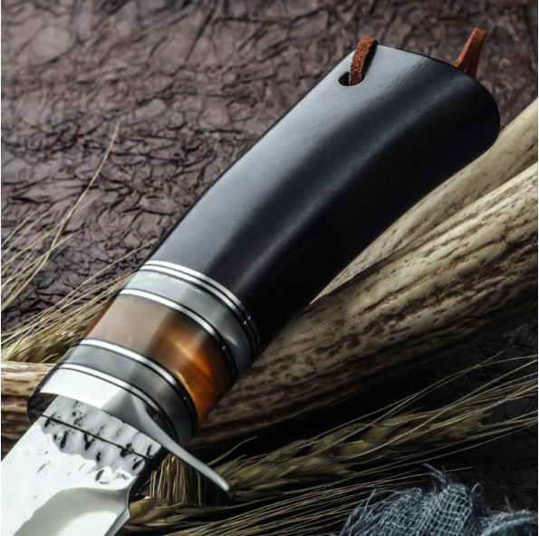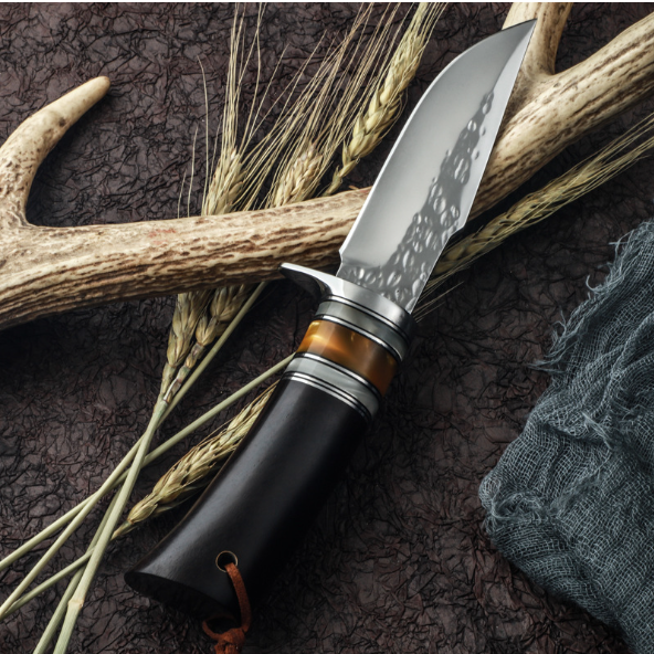 熱賣大馬士革直刀(黑檀木手柄)(規格:全長22.5*刃長9.8*刃寬3.2*刃厚0.38CM)