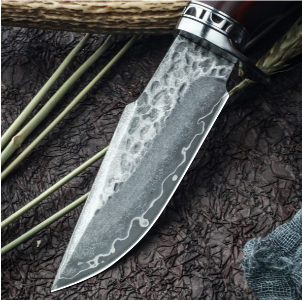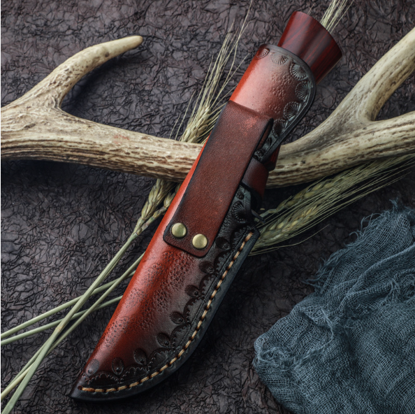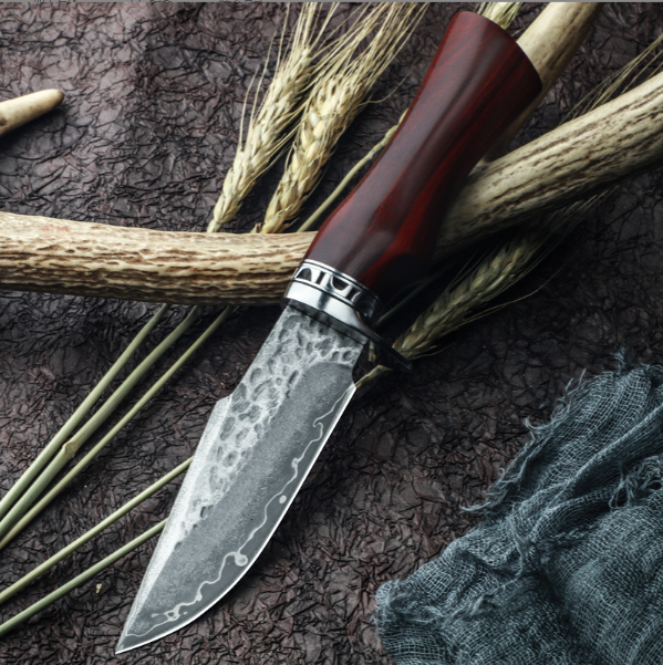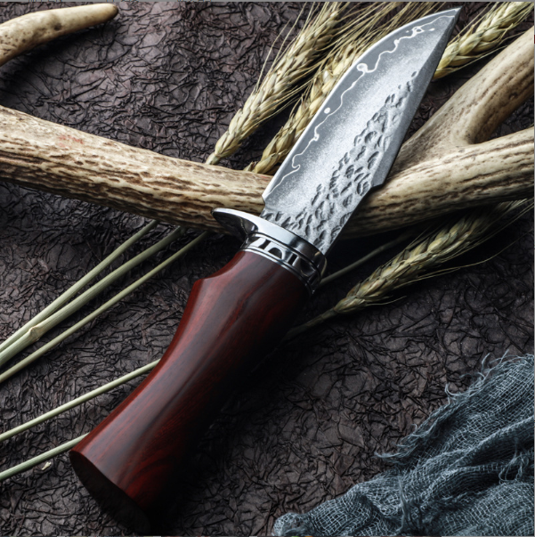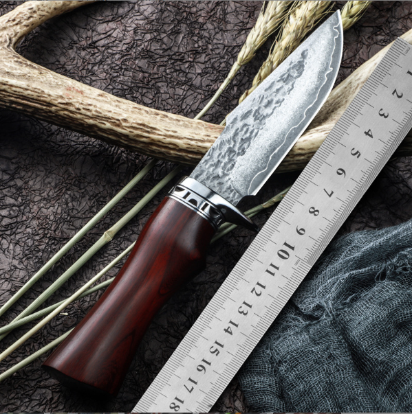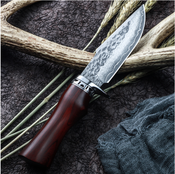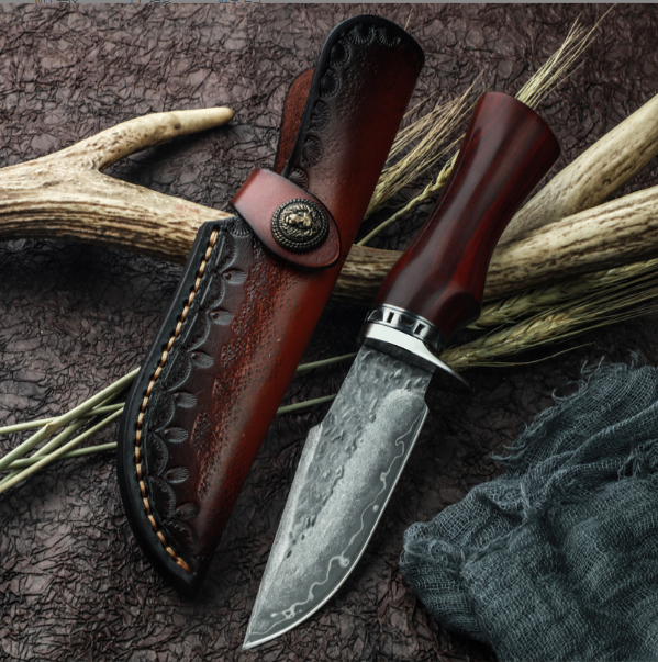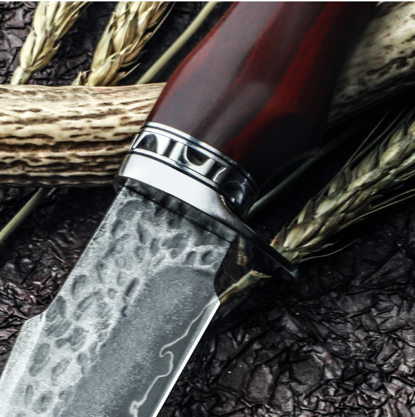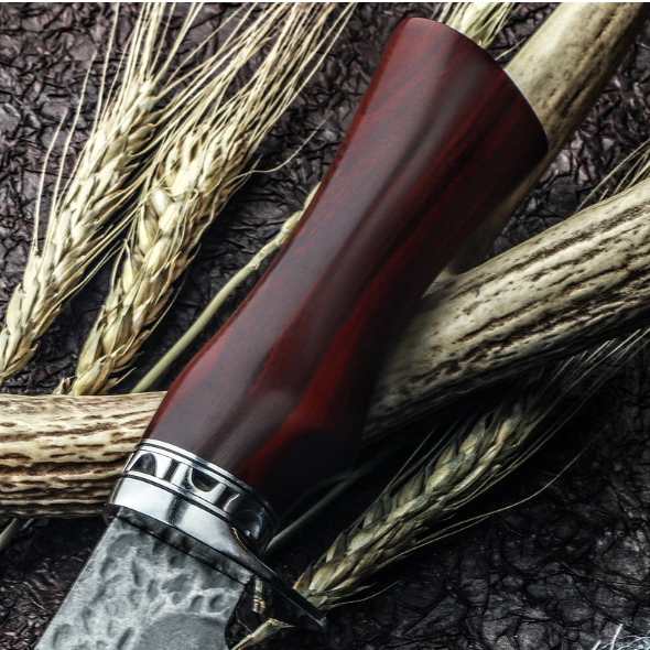 熱賣大馬士革直刀(紅檀木手柄)(規格:全長22.5*刃長10.5*刃寬3.5*刃厚0.38CM)