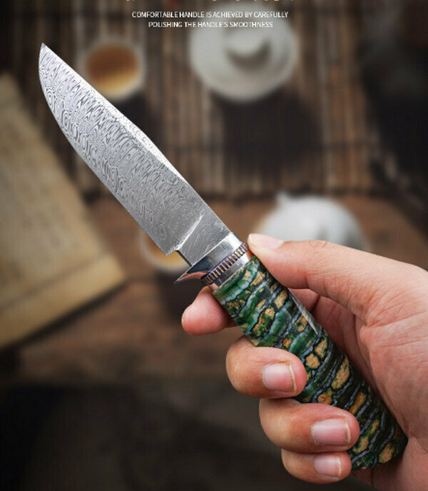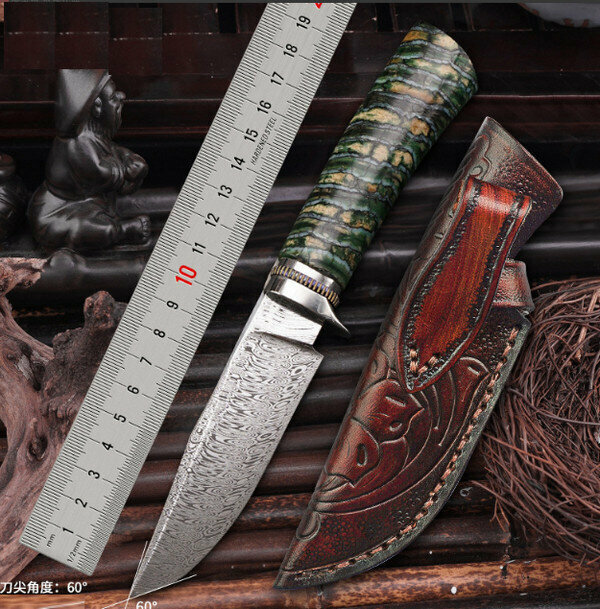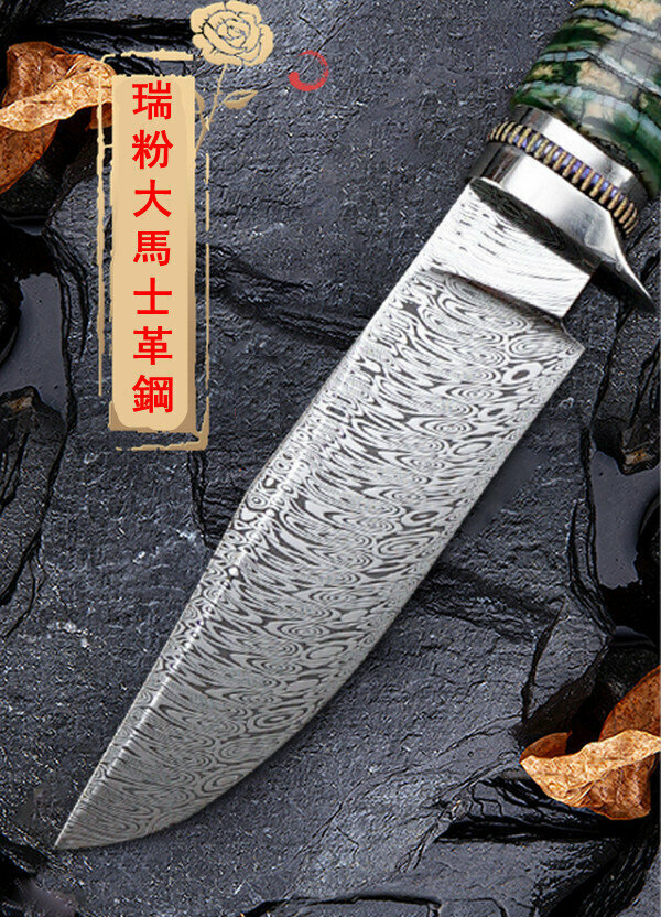熱賣火焰紋大馬士革直刀/古典收藏刀【DM--032RF】錳獁牙柄/全長204mm