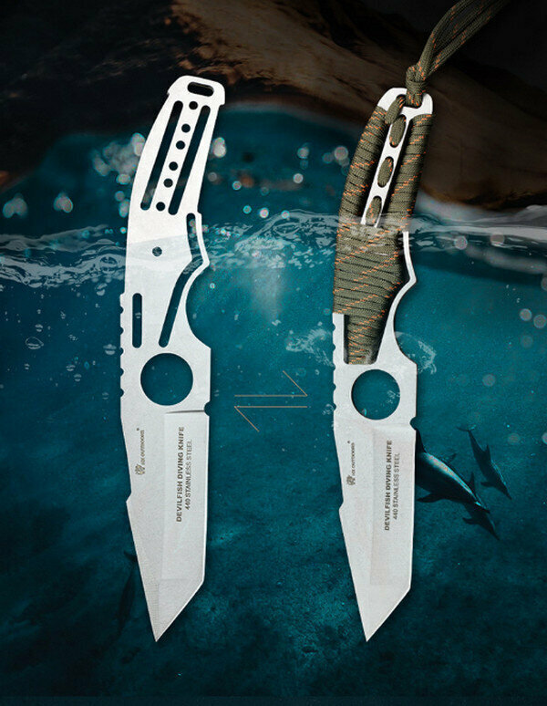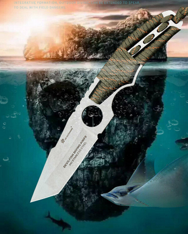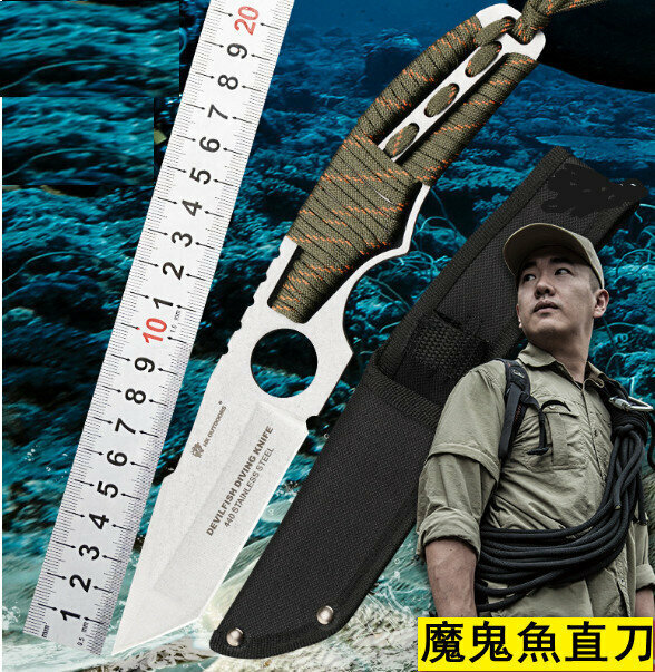 熱賣魔鬼魚直刀/野外生存刀<D-203A>黑色石洗-(全長248MM)