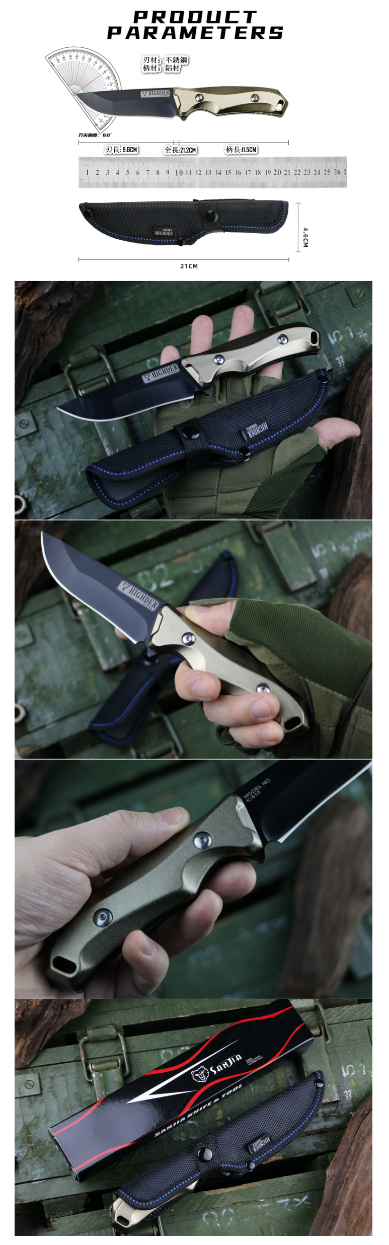 熱賣戶外鋁柄不銹鋼小刀(K610產品全長:21.2cm刃長:9.6cm)