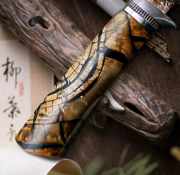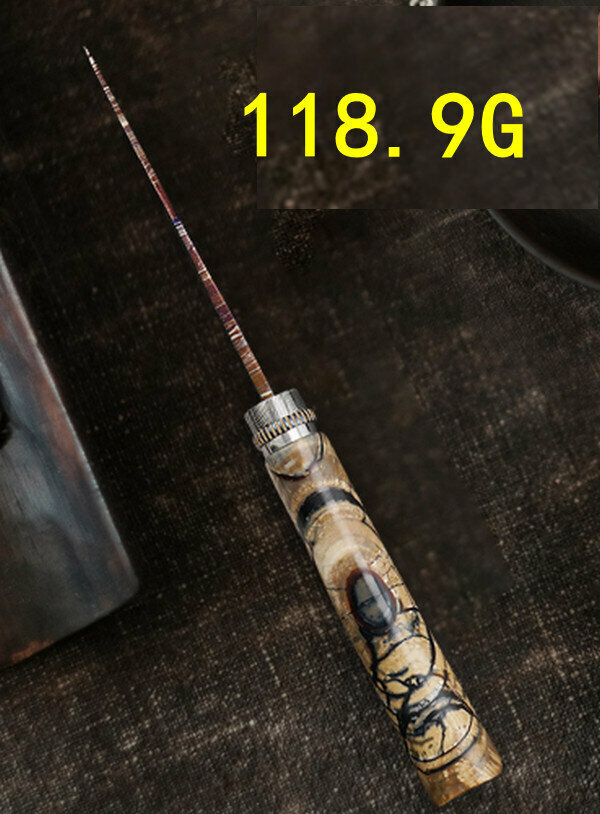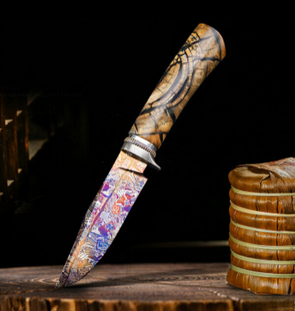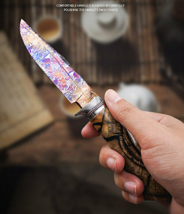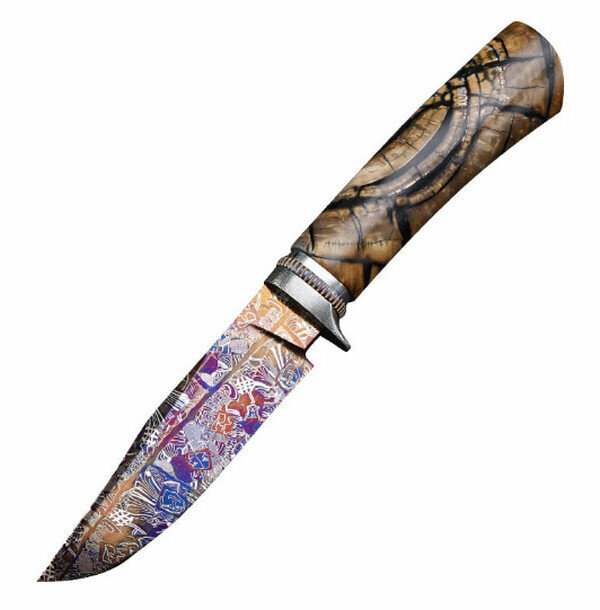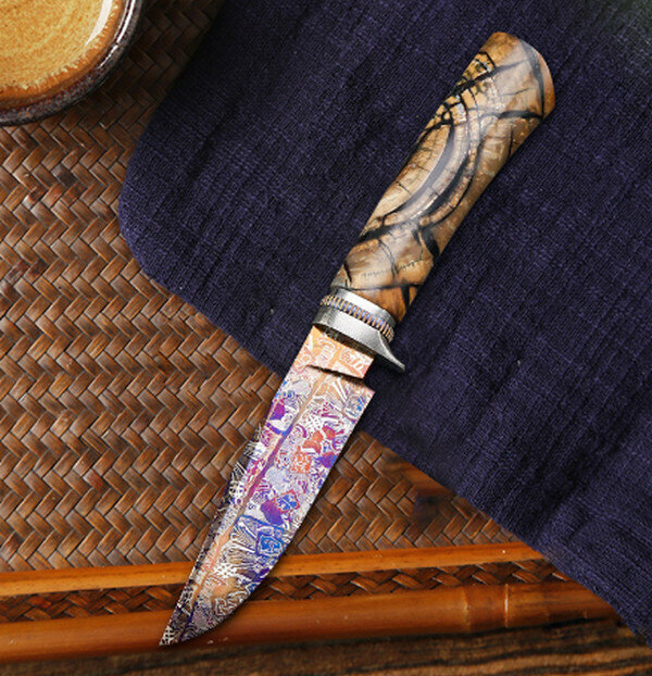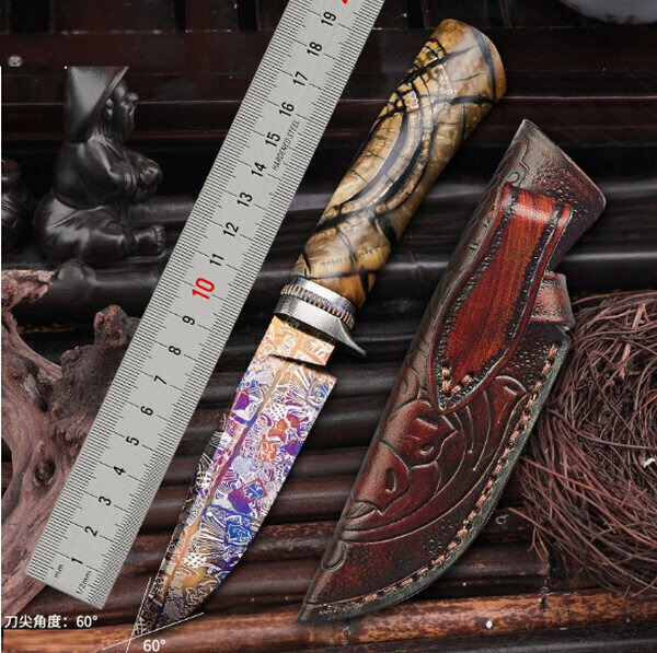 熱賣戶外大馬士革羽毛紋鋼刀/古典收藏刀<DM--032PYMSK>-錳獁牙柄(全長206MM)