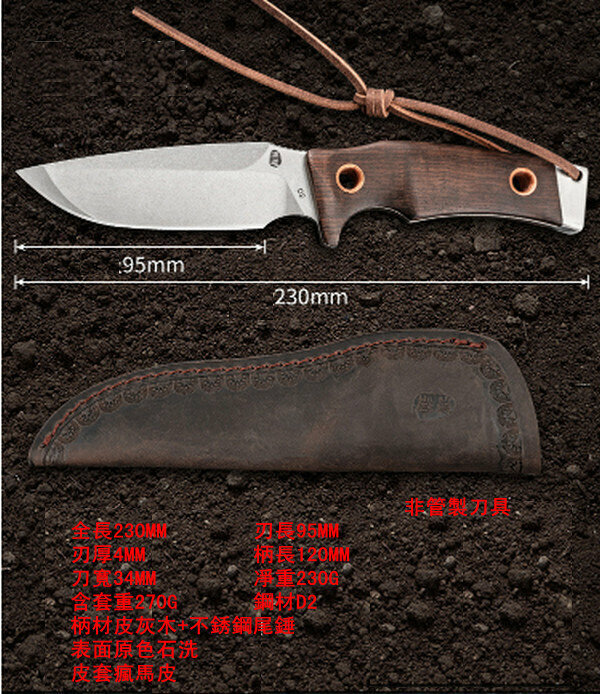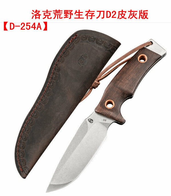 熱賣洛克荒野生存刀D2皮灰版【D-254A】全長230MM