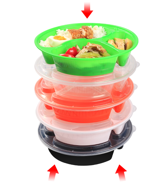 熱賣(100套裝)一次性三格外賣打包餐盒(透明色-橢圓形)(尺寸:22.5cm*4.5cm*19cm)