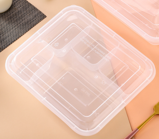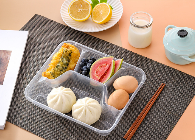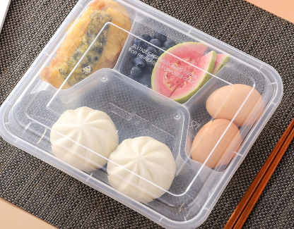 熱賣(150套裝)一次性塑膠帶蓋四格餐盒(透明色)(尺寸:19cm*22cm*4.5cm)
