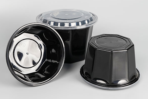 熱賣(200套裝)一次性九角美式圓形帶蓋速食打包盒(黑色)(規格:625ml)(尺寸:15.2cm*6.1cm*11.2cm)