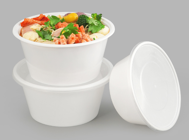 熱賣(300套裝)一次性帶蓋圓形速食打包盒(乳白色)(規格:750ml)(尺寸:15cm*6.6cm*10.5cm)
