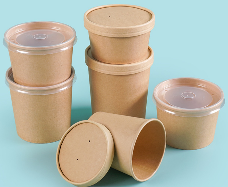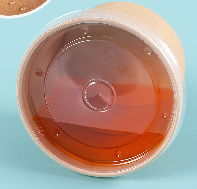 熱賣(500套裝)一次性連蓋牛皮紙圓形打包碗(透明pp蓋)(規格:300ml)(尺寸:9.7cm*6.4cm*7.5cm)