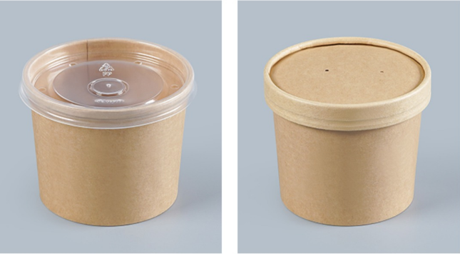 熱賣(500套裝)一次性連蓋牛皮紙圓形打包碗(透明pp蓋)(規格:980ml)(尺寸:11.5cm*13cm*9.2cm)