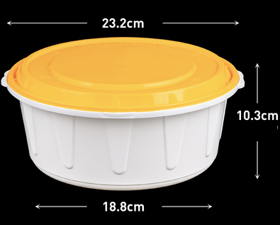 熱賣(60套裝)一次性圓形帶蓋加厚速食打包盒(白底鎖扣黃蓋)(規格:3080ml)(尺寸:23.2cm*10.3cm*18.8cm)