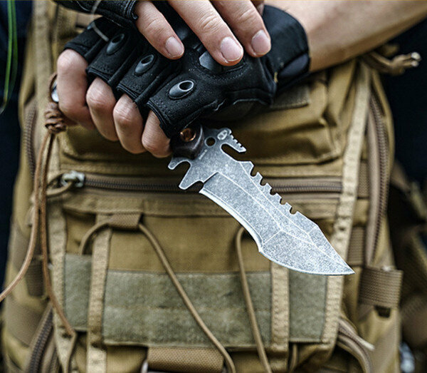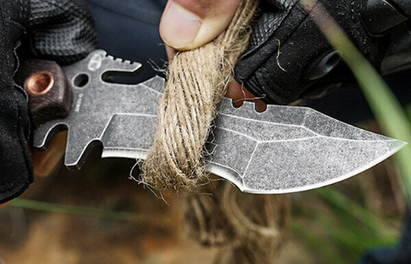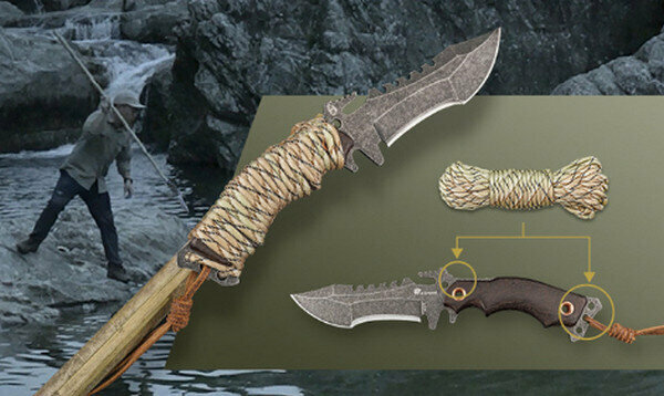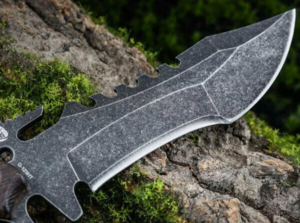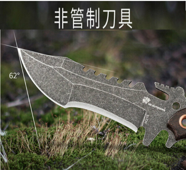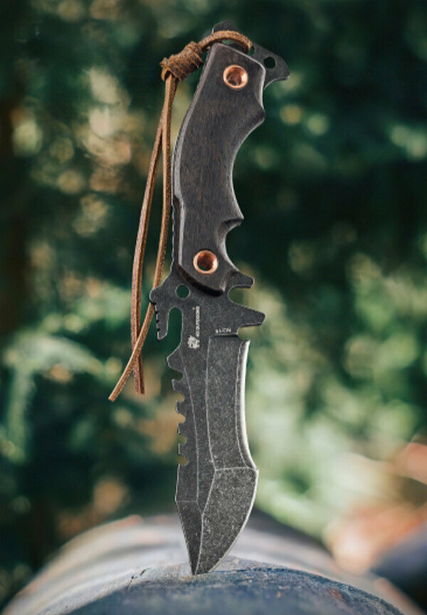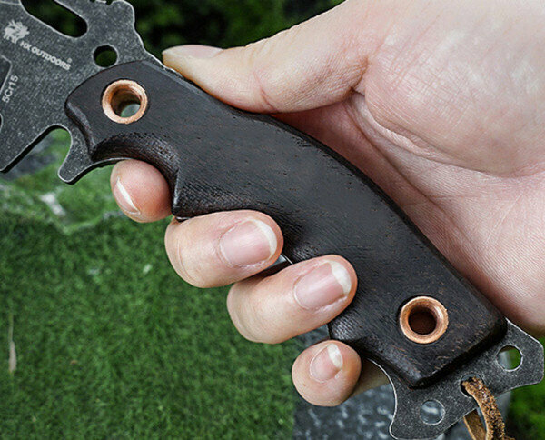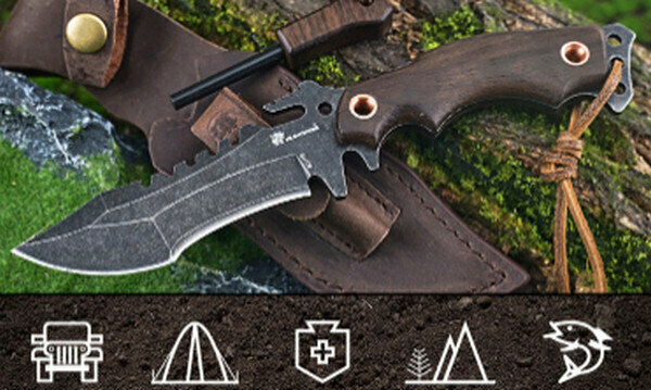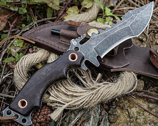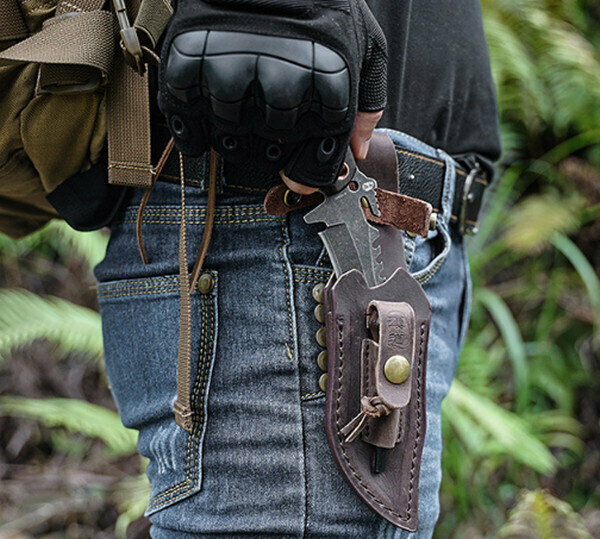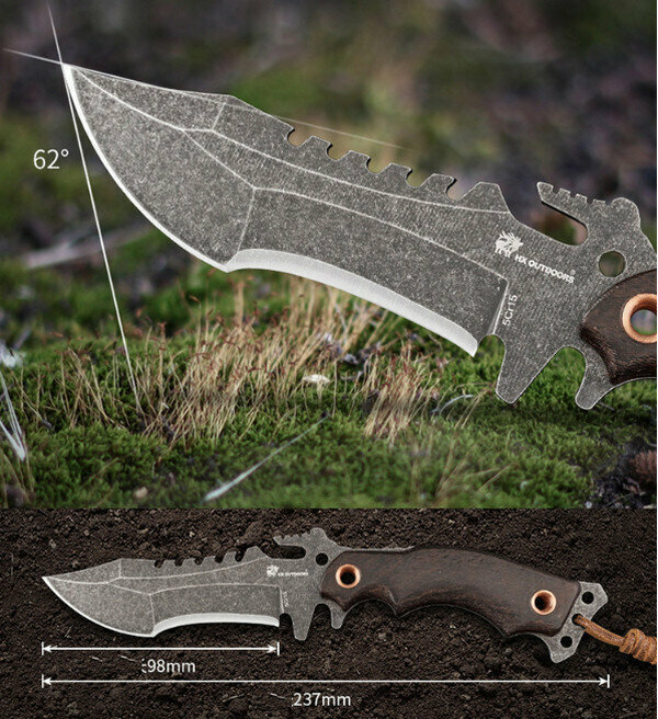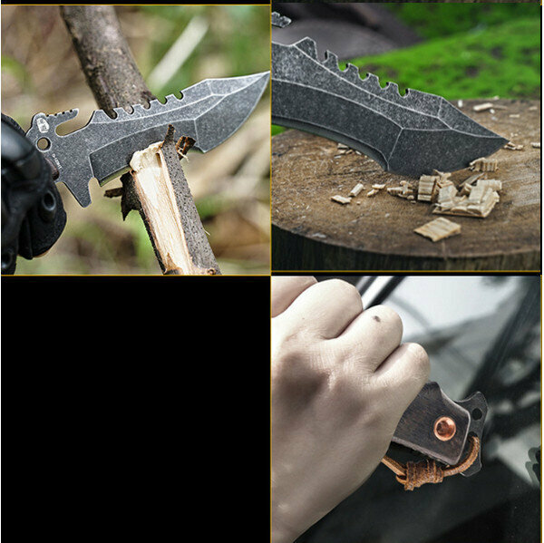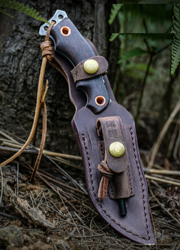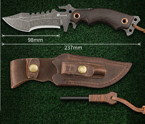 熱賣三叉戟皮灰木戰術刀(D-123HT)/瘋馬皮套子+鎂棒
