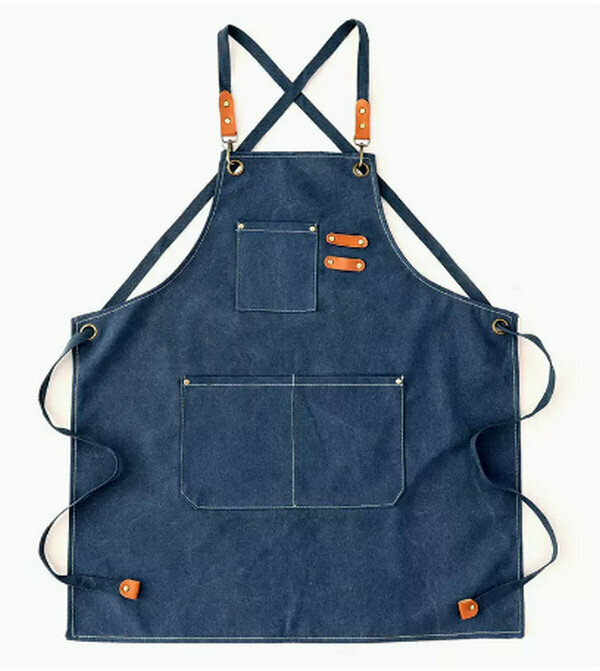 熱賣水洗厚帆布交叉成人圍裙-藍色