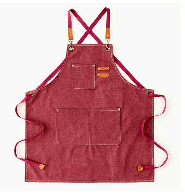 熱賣水洗厚帆布交叉成人圍裙-梅子紅