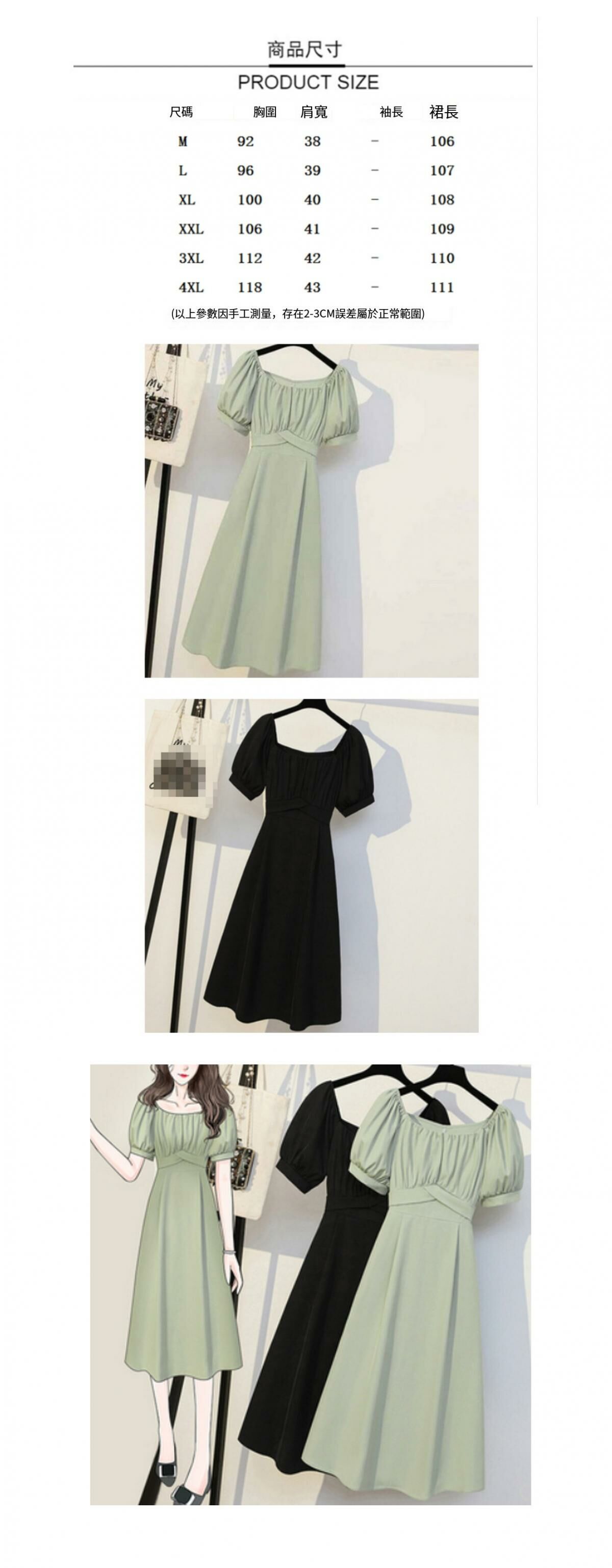 熱賣方領雪紡連衣裙【黑色】【L-4XL碼】(下單後請聯絡客服確認發貨尺碼)