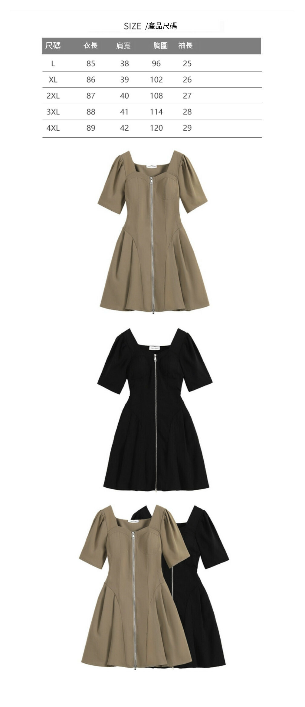 熱賣方領連衣裙【黑色】【L-4XL碼】(下單後請聯絡客服確認發貨尺碼)