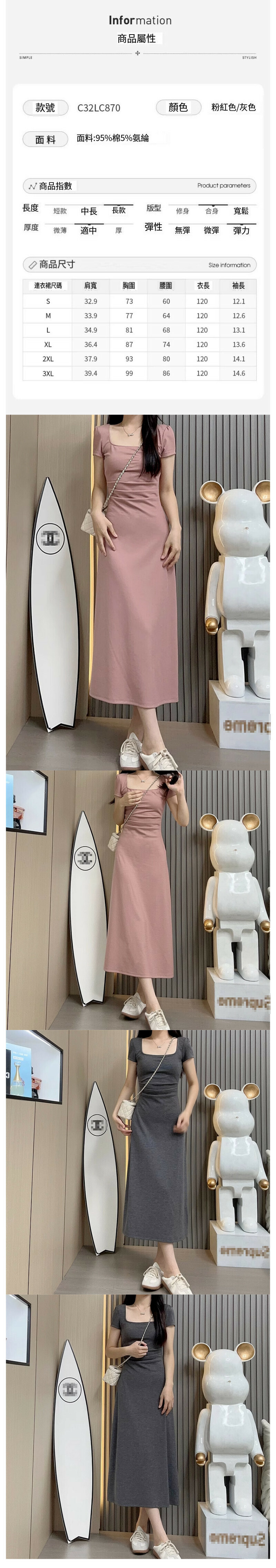 熱賣方領連衣裙(灰色 S碼-XL碼)(下單後請聯絡客服確認發貨尺碼)