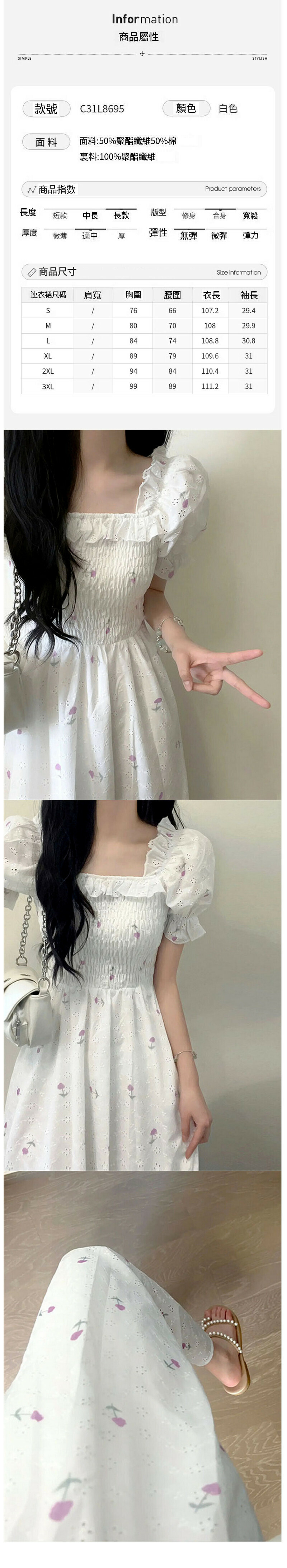 熱賣方領連衣裙(白色碎花 S碼-XL碼)(下單後請聯絡客服確認發貨尺碼)