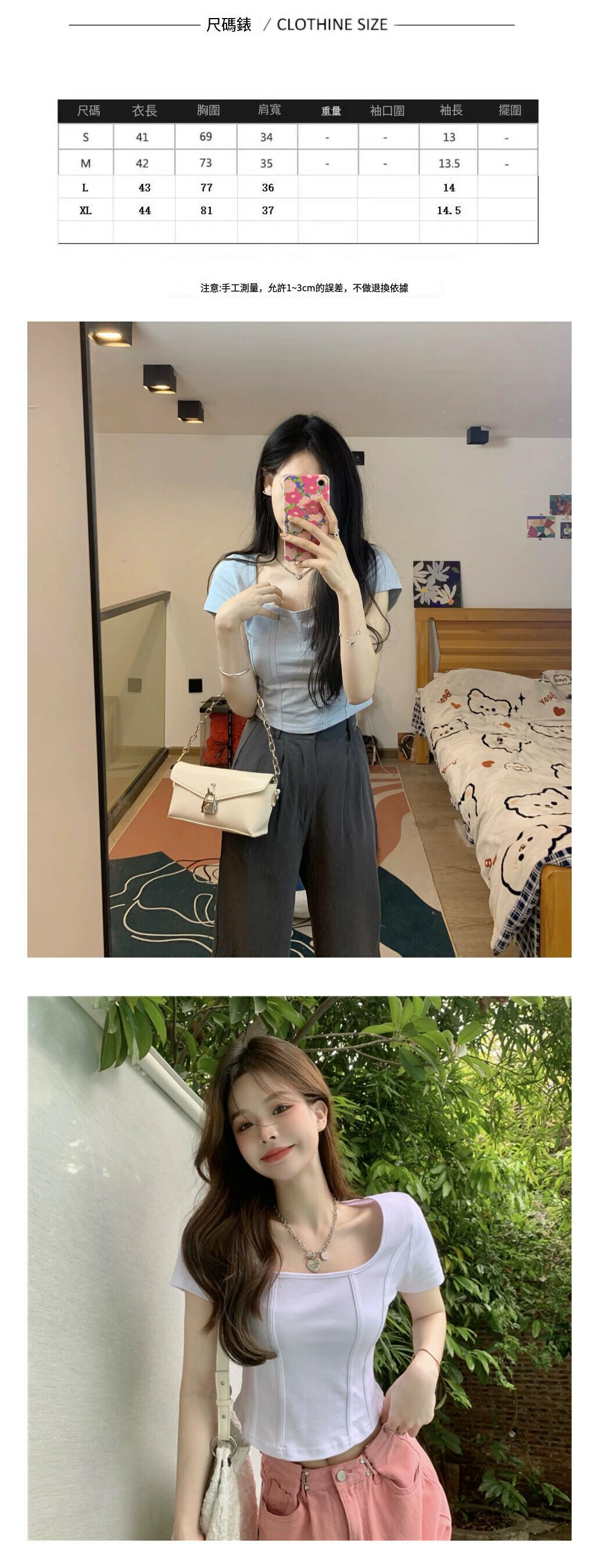 熱賣方領魚骨短袖T恤【霧霾藍】【S-L碼】(下單後請聯絡客服確認發貨尺碼)