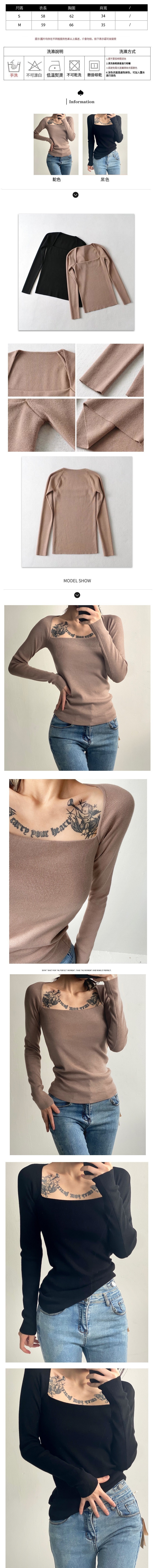 熱賣方領針織長袖T卹(黑色)(S/M碼)(下單後聯絡客服確認發貨尺碼)