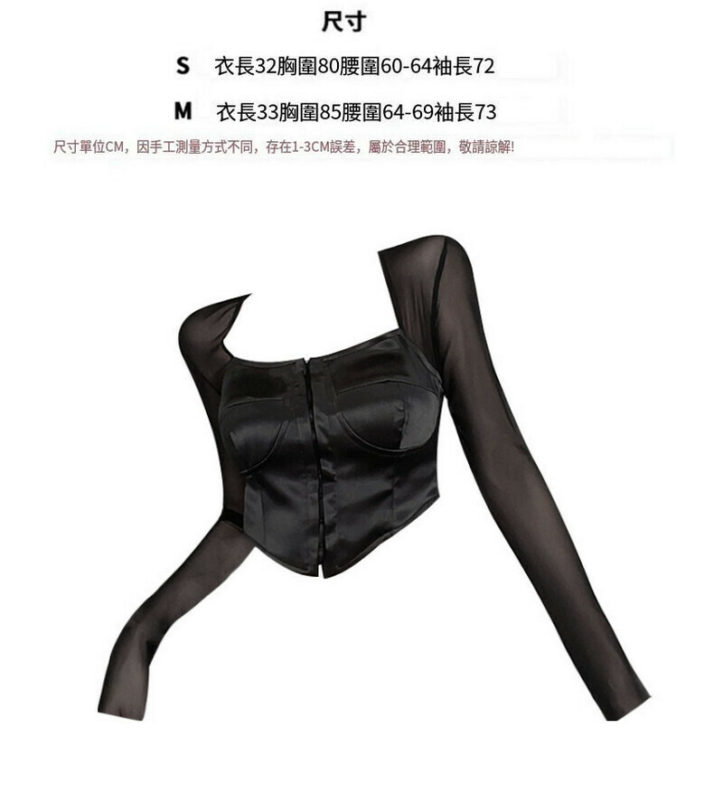 熱賣方領網紗拼接長袖T恤(黑色 S碼-L碼)(下單後請聯絡客服確認發貨尺碼)