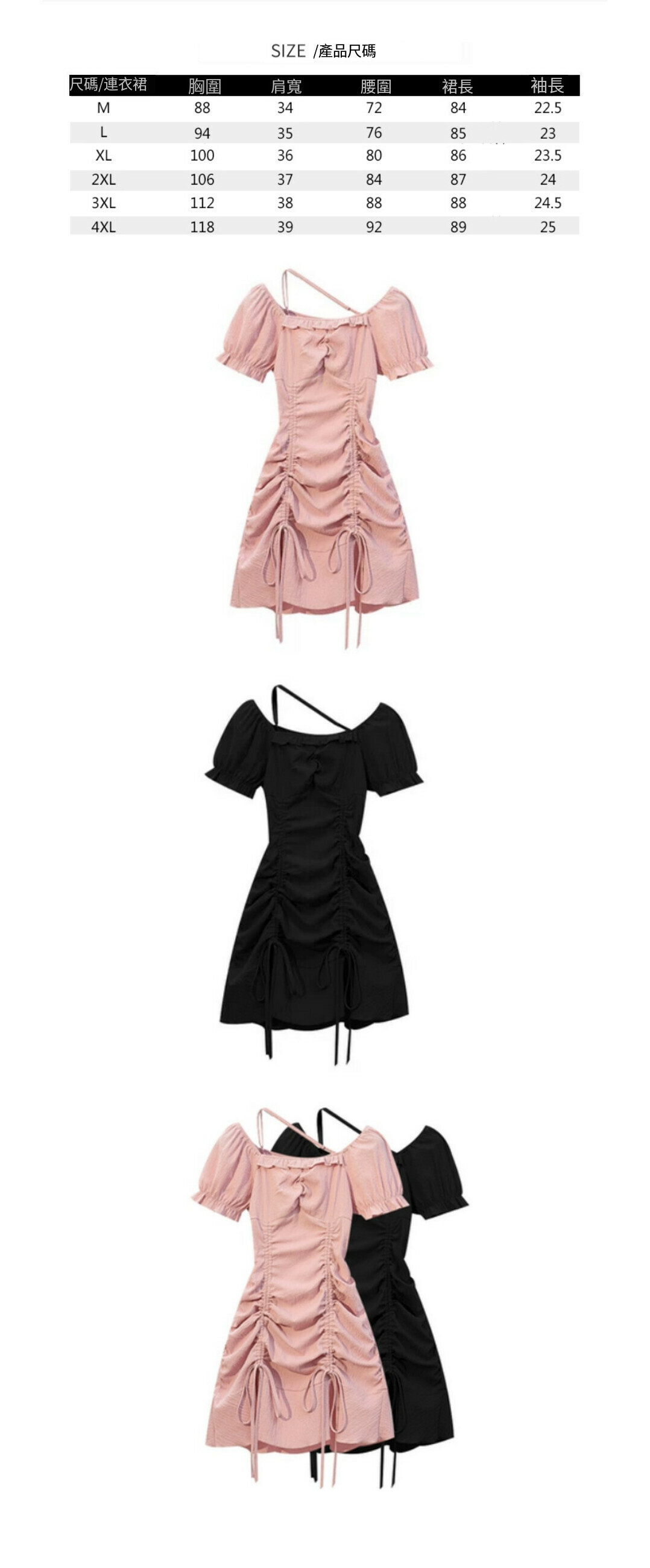 熱賣方領泡泡袖連衣裙【粉色】【M-4XL碼】(下單後請聯絡客服確認發貨尺碼)