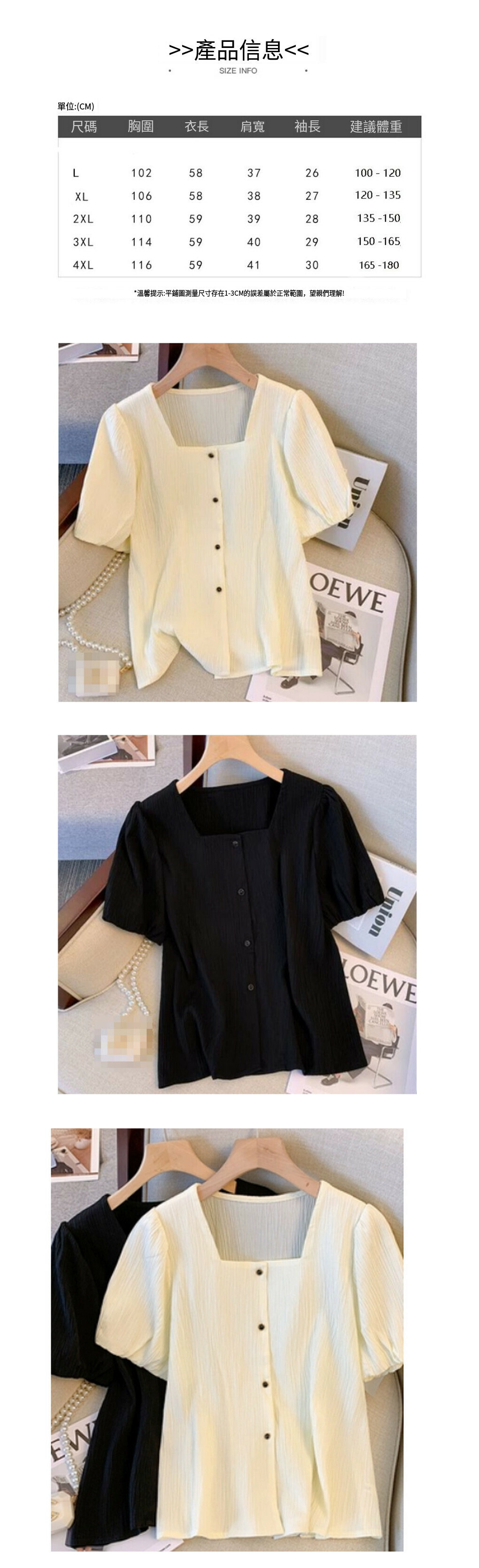 熱賣方領泡泡袖襯衫【黑色】【L-4XL碼】(下單後請聯絡客服確認發貨尺碼)