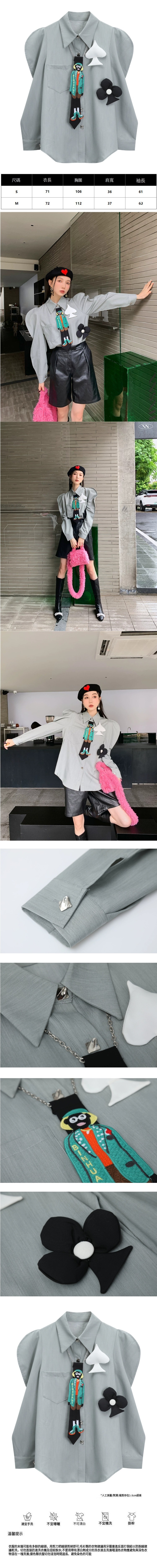 熱賣方領單口袋廓形襯衣(灰色)(S-L碼)(下單後聯絡客服確認發貨尺碼)
