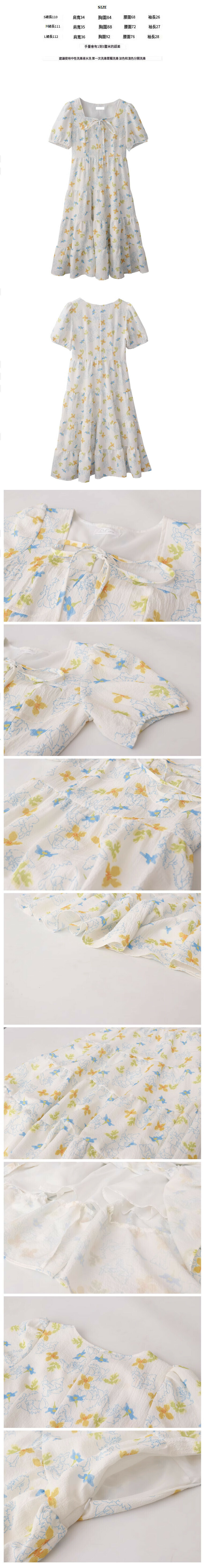 熱賣方領小碎花蛋糕裙連衣裙【黃藍色】【S碼】